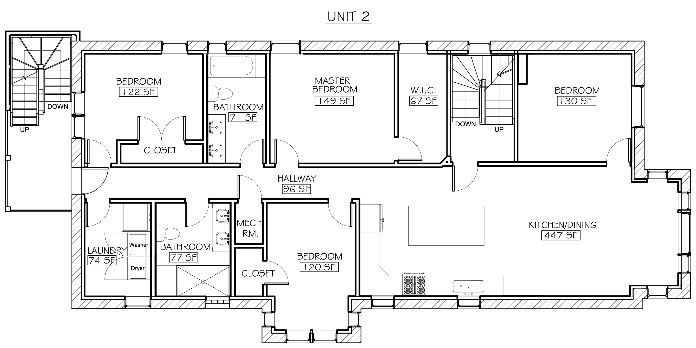 East Bedroom: The first room to welcome the morning sun, filled with natural light. Due to structural layout, Unit 2’s east bedroom does not include a closet.